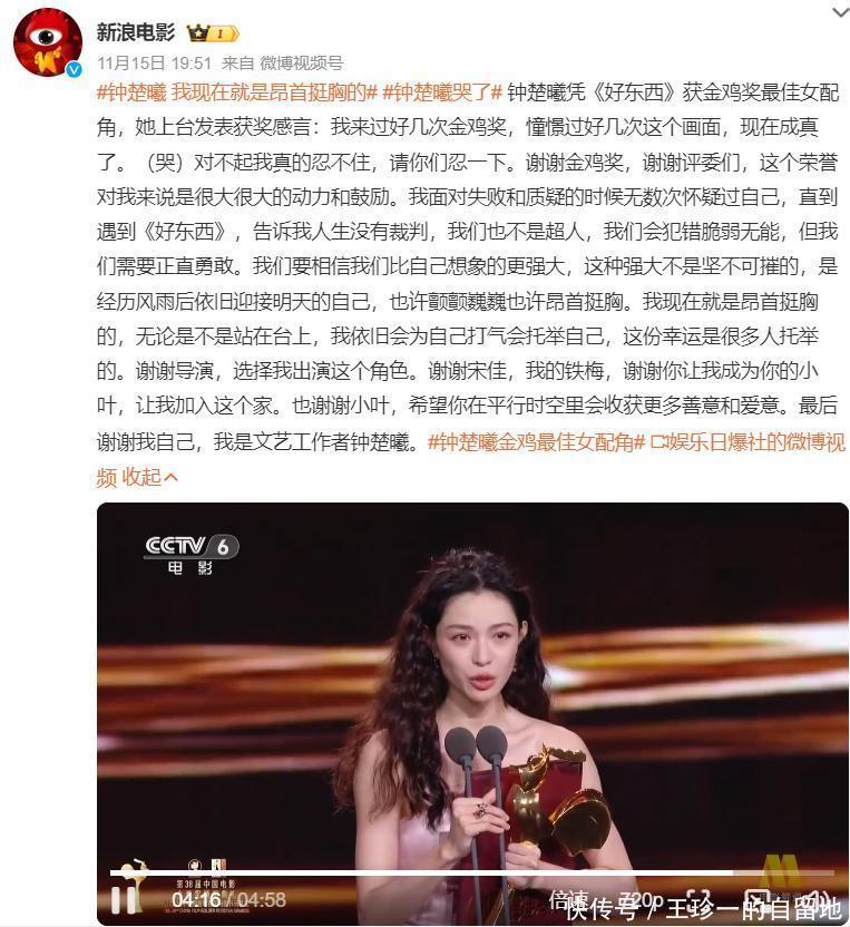 但最终钟楚曦突围而出了,获得了最佳女配角奖。
