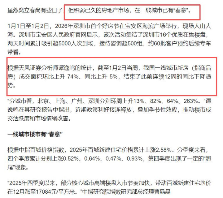 当然,市场的复苏仍带有复杂性。一线城市新房成交同比2024年跌幅超过三成,二手房天量挂牌和法拍房的压力尚未完全缓解,分化格局将在2026年上半年持续。